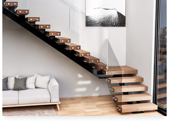 Визуальная целостность. Тетивы скрывают торцы ступеней, создавая аккуратный и завершенный вид. Такая лестница выглядит цельной частью интерьера и легко становится его архитектурным акцентом.